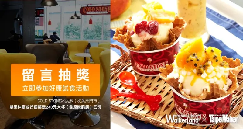 七月份WalkerLand窩客島和TaipeiWalker帶來沁涼又消暑的冰淇淋,COLD STONE冰淇淋(秋葉原門市)超人氣「雙果仲夏」,「芒個莓玩」,就是你一口、我一口,感情才不會散!現在只要在本篇情報下「留言+分享」,就有機會獲得免費試食券,跟自己的好閨密和好情人享受一下吧!