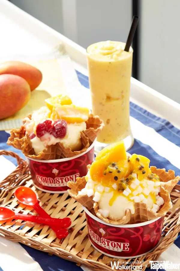 COLD STONE於今年夏天推出芒果冰品,以愛文芒果、百香果結合芒果雪貝,推出超人氣「雙果仲夏」,「芒個莓玩」、凍飲「熱情雙果」與「芒果麻糬冰淇淋鬆餅」也同步登場,期間限定至8/18(四)!位於三創生活園區的秋葉原門市,是COLD STONE第四家改裝完成的二代店,空間延續三創主題呈現科技時尚感,也提供薄餅、鬆餅等午茶輕食,超享受!