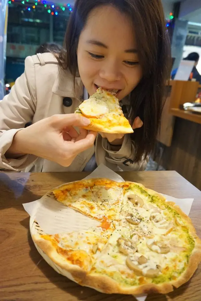 有注意到剛老闆雖然鋪了很多起司,但這披薩不會太牽絲嗎?因為老闆用的是比較不油、健康的起司。我只能說這披薩真的是超 級 香!看這小妞吃得超開心的~<詳全文>![]()