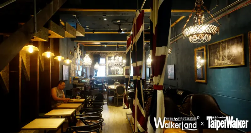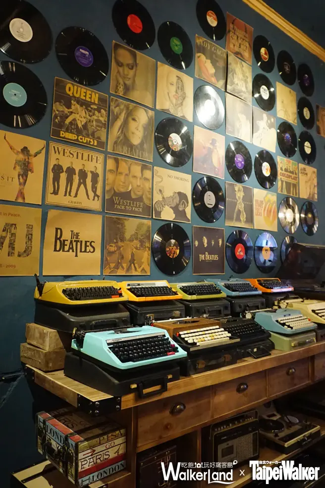 大寶與設計師Ralf,在創意激盪下將英式酒吧、溜滑梯帶入開咖啡店中,在「奧蘿茉」每一層樓都有自己的風格。國旗布簾、大沙發及吊燈,濃濃的英倫風格,讓人誤以為走進英國酒吧,桌檯上的打字機更是店主人從海內外荍羅回來的紀念品,加上牆壁上的黑膠唱片,營造出英式的復古情懷。