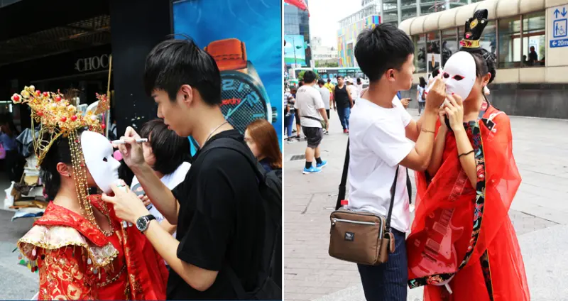 ▲適逢鬼月,西門町竟出現六位無臉古裝美女。