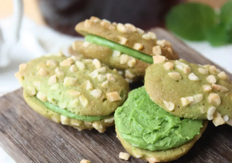 ▲英台抿茶—白巧克力抹茶杏仁:經典京都抹茶為主軸、白巧克力夾心餡搭配杏仁碎粒點綴香氣,濃鬱抹茶伴隨甜蜜內心,就像女扮男裝脫俗大膽的祝英台,勇敢追求理念不畏挑戰傳統。