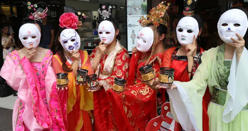 在農曆七月期間的午後西門町,居然出現六名古代美女,以武則天、李清照、林黛玉、楊貴妃、祝英台、竇漪房等的造型出現,而應是姣好的臉容上,竟是白颼颼的無臉狀。這六位無臉古代美女,竟然要求膽大的路人,在她們的白臉上畫上妝顏。