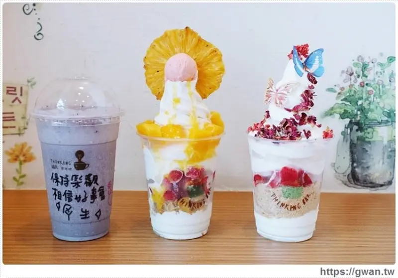 這兩杯是外表最華麗的,尤其冰淇淋上面兩隻蝴蝶真的美炸,重點是它們可以吃吶!!!!!吃起來酸V酸V,又有花朵的馨香,優格霜淇淋我也很喜歡,微酸不甜膩,味道很清爽、份量又多。《詳全文》