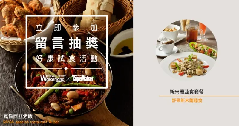 九月漸漸入秋,適合出遊的日子又來了!買機票出國前,先跟著WalkerLand窩客島和TaipeiWalker一起來趟異國舌尖之旅吧!不論是義式風味的舒果新米蘭蔬食,還是西班牙風情的MVSA spanish restaurant & bar,現在只要在本篇情報下「留言+分享」,就有機會獲得免費試食券,帶給你不同凡響的味覺之旅!