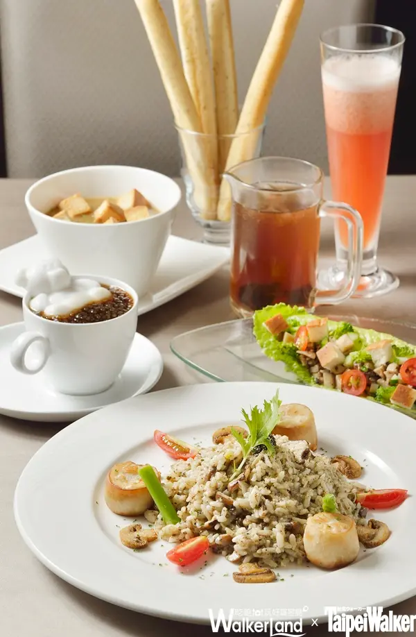 新米蘭蔬食套餐398元起/新推出的季節限定主餐「松露野菇燉飯」,以義大利米、香菇、金針菇、洋菇與松露醬拌炒,最後擺上杏鮑菇、小蕃茄,除了保有義式燉飯微硬米心的口感特色,松露醬的迷人香氣也增添燉飯風味。套餐包含七道餐點,若選擇季節限定主餐需額外加價50元。