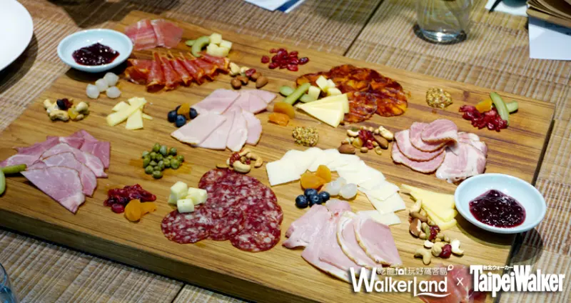 運用肉品特色,主廚推出「綜合RÒU拼盤」,可依人數選擇份量,6-8人份的肉拼盤,精選八款經典醃肉,按顏色從淺開始品嘗,也能搭配果醬、果乾、堅果一起享用;「滿滿黑胡椒粒培根排」,精選油花層次分明的五花肉,手工裹上一粒粒的黑胡椒,再加以煙燻上色、煎烤,使培根肉紮實而不油膩。
