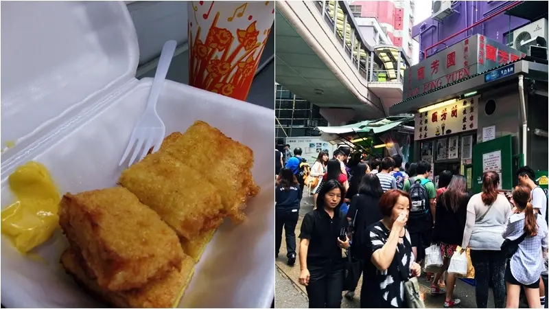 到香港一定要吃港式點心,推薦有40年老字號的「蘭芳園」。招牌是絲襪奶茶和厚片奶油土司,絲襪奶茶非常香濃,製做過程有點像泰式奶茶,配上不知道為什麼普通的奶油吐司卻這麼好吃!