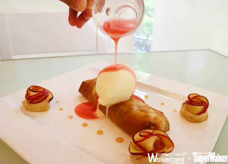 ▲【酥脆蘋果捲】輕薄滑順的義大利麵皮包覆甜脆爽口的日本青森富士蘋果丁,形成滋味豐富的蘋果捲。![]()