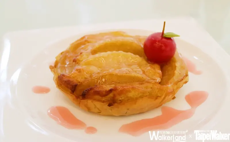 ▲【菲洛金星蘋果塔】將塗抹澄清奶油的義大利酥皮層層堆疊,與杏仁奶油、糖煮葡萄乾,融入以焦糖手法製作的台灣「金星蘋果」片一同灌入烘烤。![]()