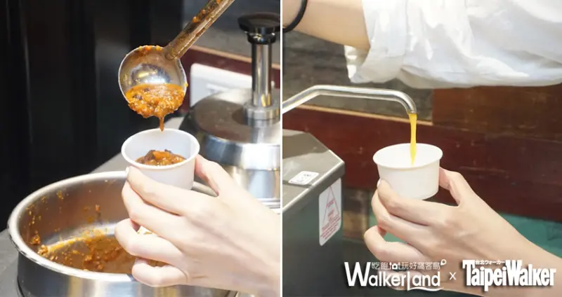 ▲「Burger Ray」肉醬、起司醬可依需求自行取用。(圖/張子豪 攝)