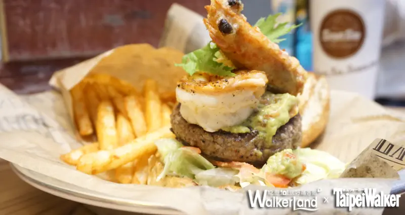 「牛P堡」指牛肉結合明蝦(Prawn),是主廚Ginger以海陸牛排結合美墨料理作為發想,蝦頭部分以天婦羅方式油炸處理,蝦身則以乾煎的方式保有蝦肉的鮮甜,最後配上酪梨醬一起大口吃,相當清爽。(牛P堡每日限量30份)