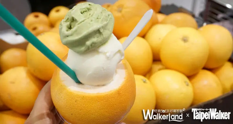 ▲「花阿蘇美」水果冰淇淋新鮮清爽,還使用葡萄柚當容器。(圖/張子豪 攝)