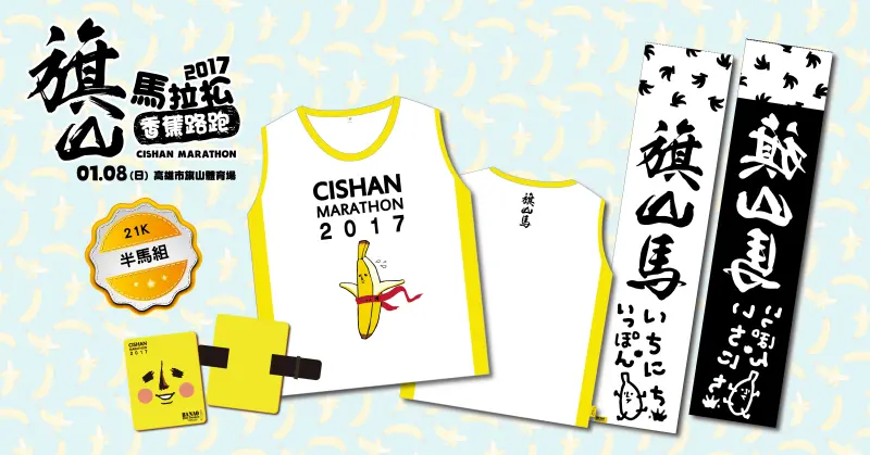 首屆旗山馬邀請日本香蕉先生BANAO作為代言人,凡是報名的跑者都能擁有香蕉先生機能排汗衣,21K及10.8K還有特製的圍巾式毛巾,於跑步中攜帶更方便,毛巾印有香蕉先生提筆親寫的「每日一根香蕉」,以上商品僅限跑友專屬擁有喔!不管你是喜歡路跑還是香蕉先生BANAO,這次的旗山拉松香蕉路跑,你絕不容錯過!![]()
