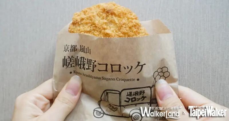走訪京都嵐山必嚐嵐山コロッケ,酥脆軟嫩的「”京”黃金可樂餅」,金黃色內餡,能嚐到南瓜鬆軟美味及鰹魚高湯的香氣,讓人忍不住迅速完食!![]()