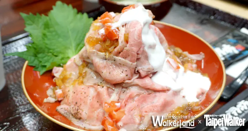 ▲低溫烹調的「牛角次男坊薔薇豚丼」,淋上洋蔥醬、優格醬增添香氣。(圖/張子豪 攝)