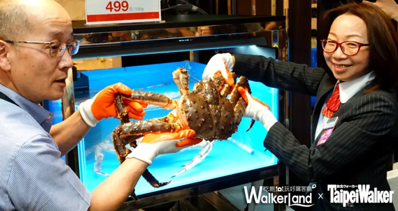 ▲新光三越找來「函館海鮮市場」合作,北海道空運直送的帝王蟹就在眼前。(圖/張子豪 攝)