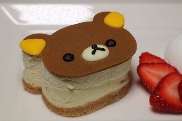 拉拉熊的臉是巧克力做的,吃之前我還先將他撥到旁邊先吃底下的生乳起司蛋糕,他的臉看起來真無辜,還是留到最後再吃。