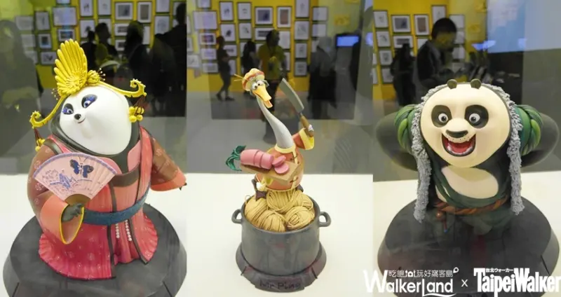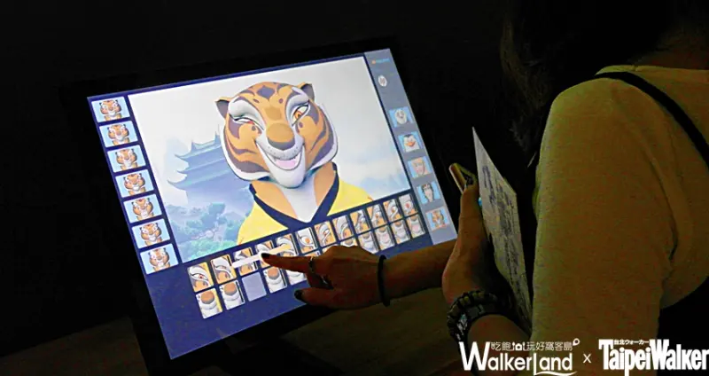 第一站進入腳色製作的主角區,展示夢工廠20年來首次曝光的動畫手稿、泥膜、道具等,全程目睹可愛的功夫熊貓最初的概念稿、草圖演變到定稿的模樣。現場還提供《臉部表情師》的互動裝置,輕鬆靈活變換腳色表情,不管是小眼睛、大嘴吧、歪鼻子都由你決定!![]()