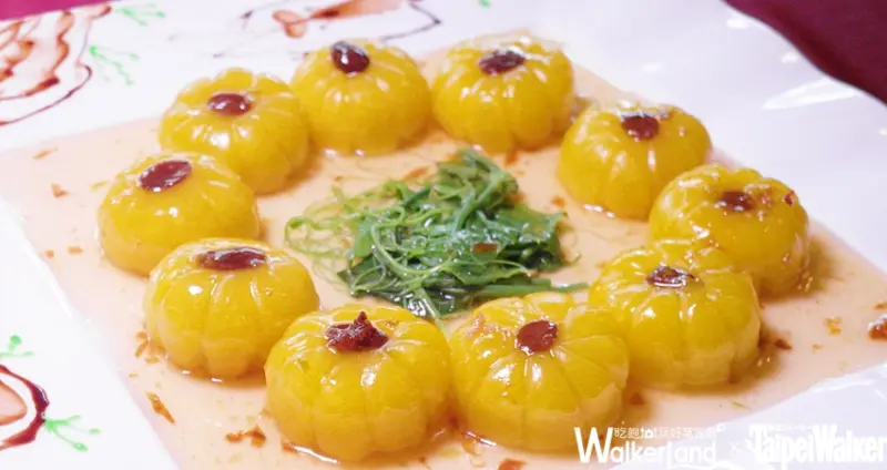 ▲黃金南瓜包 / 一口咬下滿滿的蔬食餡料配上嚼勁的南瓜外皮,層次極為豐富。