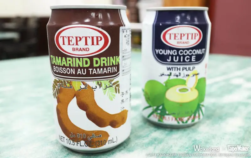 在緬甸街大口享用雲南料理,也別忘了引用來自泰國的罐裝飲料。其中的椰子汁,與一般常喝的的淡雅口味不同,而是味道相當濃郁,並且還有著椰子果肉,與南洋料理相當的對味。另一種飲料是台灣比較少見的「羅望子汁」。羅望子本身是是一種豆莢類的酸豆,除了有開胃的效果,普遍的被應用在許多泰式料理的酸湯汁中。而製成果汁,更有著酸酸甜甜的異國口感。在吃完香酸辣的雲南料理後,來一瓶羅望子汁,更是一種完美的結尾。