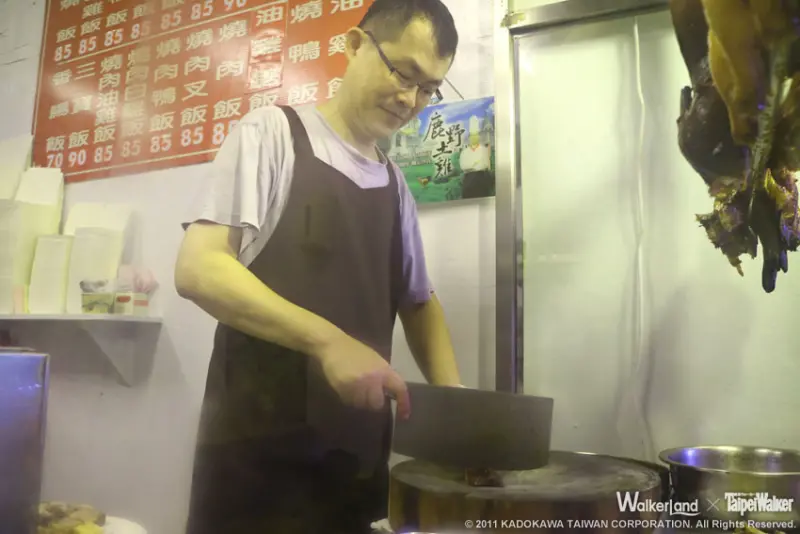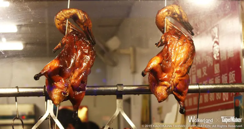 任老闆選擇以4斤半到5斤的「櫻桃鴨」來作烤鴨。宜蘭的櫻桃鴨,原產於英國櫻桃谷,在宜蘭大量養殖,以宜蘭的好水和進口玉米粒為飼料,因此在肉質上較為緊實細緻,油脂鮮甜而不膩。相對好的鴨肉品質,在成本上當然也相對的高。而良好的鴨肉品質,當然也需要講究的燒鴨技術才能彰顯。在任老闆每天耗時10多小時的烤鴨工序,自然做出讓廣東老鄉稱讚的便當。而店裡油雞所採用的雞肉,也是鹿野放山雞。因此在食材的選擇上,實在是相當的用心。