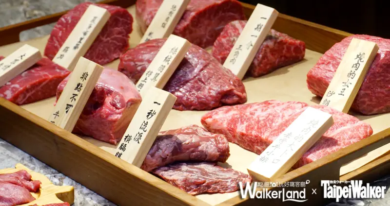 樂軒和牛肉皆以「排餐尺寸」由專人桌邊服務直火碳烤,以「夢幻牛一頭」拼盤為例,消費者可以同時吃到牛舌、橫膈膜、沙朗、菲力、去骨牛小排到板腱,從油花少的部位開始吃,再搭配特選越光米,讓口中的牛肉越嚼越香。