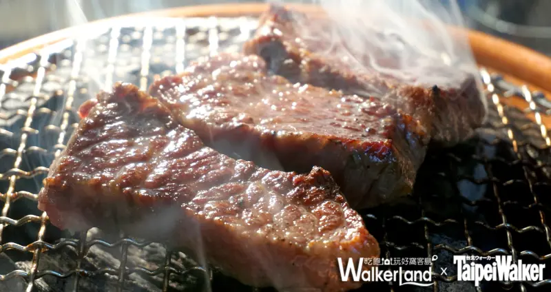▲圖中為油花豐富的去骨牛小排,透過烤爐旁的燈光,讓煙霧瀰漫的牛小排更顯誘人。