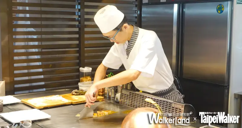 「大江戶町活海鮮鐵板燒」以大量木頭元素裝潢,營造出江戶時代氛圍,在走進餐廳宛如置身日本的錯覺。在座位區上的規劃,大致分為兩部分:鐵板台前餐區、座席區,編輯建議,如果想欣賞師傅們精湛的鐵板廚藝,絕對要坐在鐵板台前,因為才能第一時間品嚐到熱騰騰的鐵板料理。
