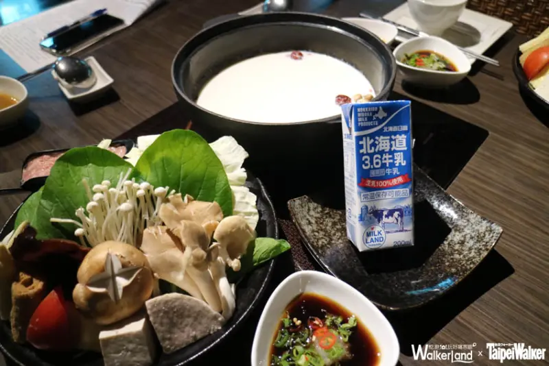 消費者拿著自己原裝拆封的「北海道日高3.6牛乳」,緩緩的倒入火鍋湯底中;這樣的體驗,除了新奇有趣,其實代表著店家對於食材的童叟無欺。另外,也讓人思考另一個牛奶鍋的意義,難道,任何鍋物只要倒了牛奶就可以稱為牛奶鍋嗎?而除了優質牛乳,是不是還有其他的步驟才能完全展現牛奶入鍋的完美表現?