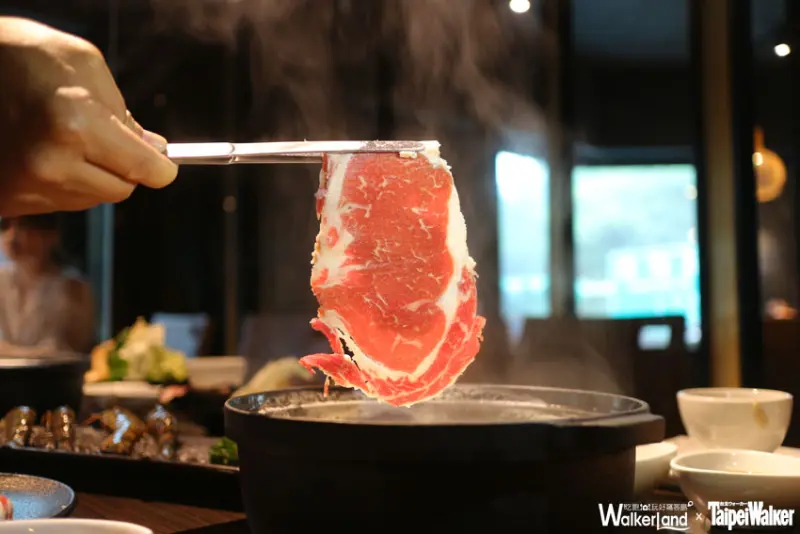 ▲可單點的美國【特選肋眼牛肉】肉質細緻,面積比臉還大,其豐富的油花分布均勻,除了堪稱為肉中極品,且與「北海道牛奶鍋」相當搭配。主廚特別傳授『三五涮肉法』,讓肉質呈現五分熟的絕妙口感。
