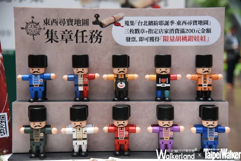 除了美食之外台北市政府要讓耶誕節很不一樣!首次串連東區、西區兩大商圈,與商圈內百貨、飯店以及手作文創店家合作,推出有趣的集章活動《東西尋寶圖》,民眾可以循著尋寶圖集章換精緻手作胡桃鉗娃娃,同時認識各有特色的台北商圈 ---- 西區傳統、具有歷史人文的風貌,以及東區的時尚、國際化氛圍。