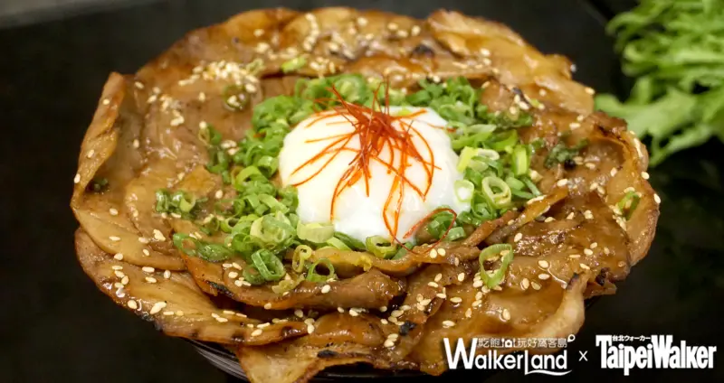 ▲「豚丼」鋪滿厚實的豬肉片,不吃牛肉的人也能享用。(圖 / 張子豪 攝)