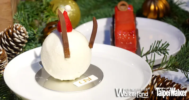 另一款「RJ風尚」,紅豔的跑車的外型十分吸睛,主廚以聖誕節小男孩的禮物做為創意發想,外層包覆著是由大溪地香草、綠胡椒乾鍋煙燻,注入鮮奶油而成的甘納許,二、三層分別是芒果泥,以及杏仁粉、香草籽烘焙出的杏仁脆片,最後一層則是蛋白、杏仁粉及糖粉製作成的達克瓦茲,裡外層次豐富,混著一起入口令人心情愉悅。「CJSJ」即日起至12/18(日)客座台北晶華酒店,甜點單品套餐(1甜點+1飲品)每款480元+10%起,另外,在晶華外賣櫃「Regent Gift Shop」可購買耶誕糕點禮盒,也可以選購櫻桃及雪人四吋蛋糕。