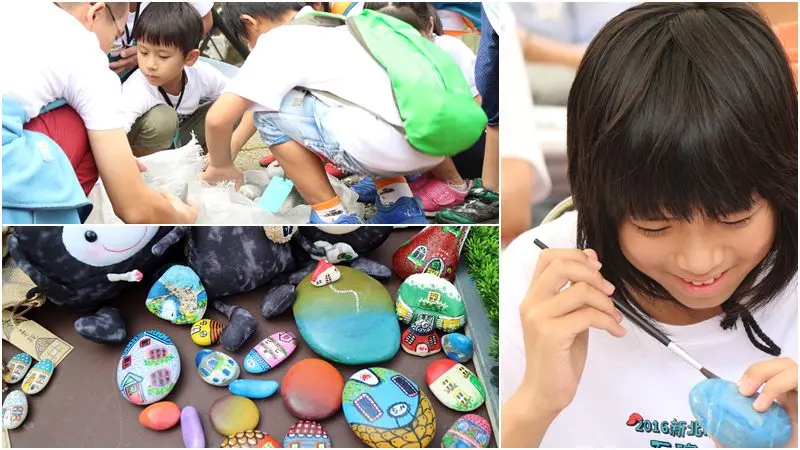 「2016新北市石碇彩石趣」活動當天,來自各地的200位大小旅人們,以石碇國小為起點,可在自行挑選的小小石頭上方,跟著職人的手作技藝,畫出每個人夢想中的石頭屋!