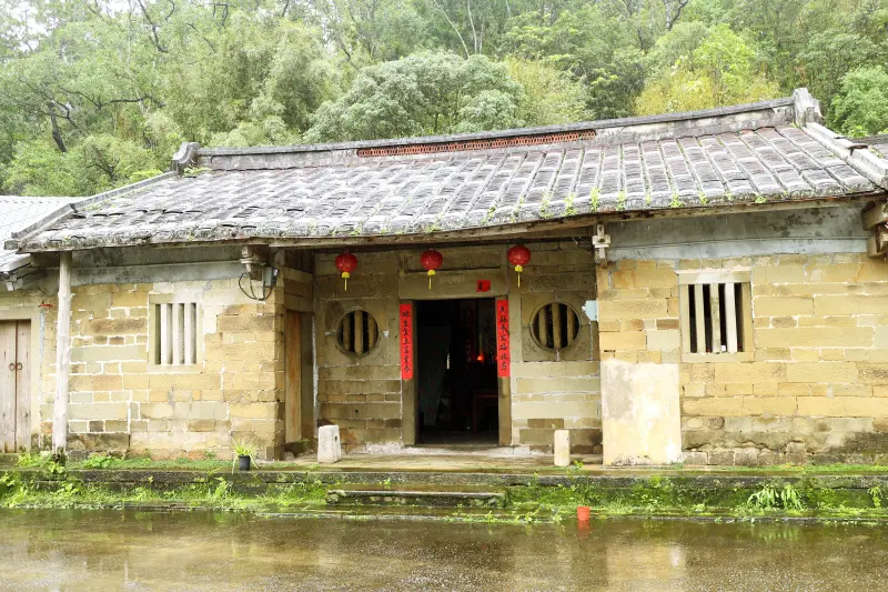 位於茶花莊後方,有座百年閩式古厝,這是茶花莊主人莊豪雄的住家,更是1901年雙溪貢生莊廷燦的故居。莊豪雄承自家族基業,不僅推廣花藝,同時延續祖產維護,使古厝仍保持完整石砌原貌,自外觀清晰可見象徵富貴之喜的茶花浮雕。