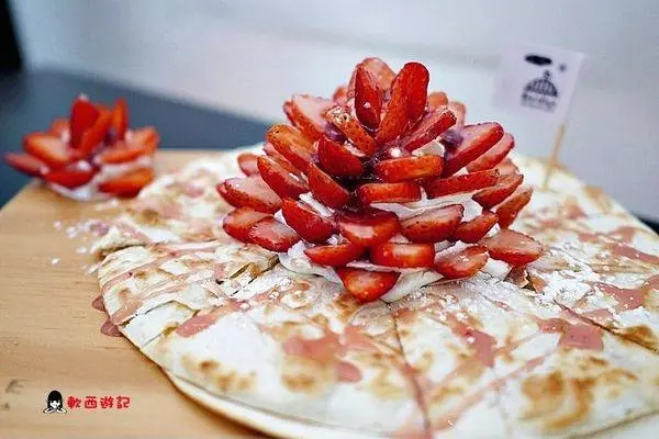 看那漂亮的草莓擺成一朵漂亮盛開的花,也太吸睛了吧!不得不說這橋餅很特別,像印度薄餅但是又外脆內軟,裡面甜蜜蜜配上草莓香好好吃喔!餐點表現都很出色而且好平價!<全文介紹及店家資訊>