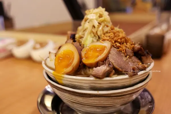「藍色起士」說:天阿~ ~ ~這這是一座山吧!!!我看翁先生傻眼了,滿滿的叉燒肉、豆芽菜高麗菜、蒜片及糖心蛋,就這樣豪邁的、霸氣的高出碗的地平線,我心中有一股熱血想要挑戰!<詳全文>![]()