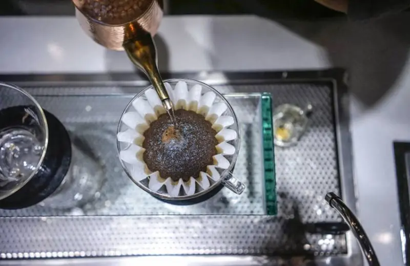 ▲咖啡師以具有韻律的手法,使用90度的水進行手沖的程序。過程中每個動作都有其意義,如浸濕、環繞、水流控制等手法,展現咖啡豆的風味 / 照片提供:數位編輯 林志豪 攝