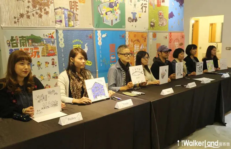▲臺南市政府觀光旅遊局王時思局長偕同本次參與手繪地圖的其中八位插畫家,一同出席台南手繪地圖的記者會。/照片提供:台南市政府觀光旅遊局