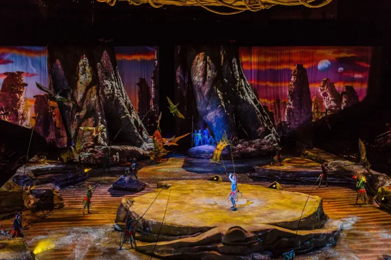 太陽馬戲與奧斯卡金獎名導詹姆斯.卡麥隆首度攜手共同製作舞台鉅作—《阿凡達前傳》,以最新的擬真投影科技,搭配操偶術、舞台搭景,以及太陽馬戲最著名的各式特技,讓現場觀眾猶如親臨潘朵拉星球。![]()