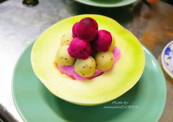 70年以上歷史的泰成水果,在這一波冰果大戰中也脫穎而出。使用整顆哈密瓜做盅,再將冰淇淋一球球地疊上去,這樣的概念,雖非原創,但是在造型上不但有趣,同時也吸引了消費者想要來大快朵頤一番。其中與韓國哈密瓜冰最大的差異,應該來自於場域的元素。店家口排滿了滿滿的新鮮果物,平凡無趣的裝潢卻代表著實在感。老闆將哈密瓜從攤位上取出,開始對切並擺上滿滿的冰淇淋球。雖然製作過程稍久,卻帶給消費者一種對於天然果物的信賴感。這也許就是一種充沛底蘊與創新相乘的絕佳效應。