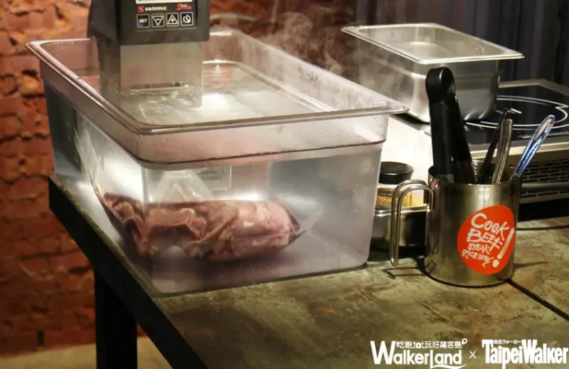 然而,有別於一般炭火直烤的日式丼飯,或是以煎烤方式料理的排餐,吳威勳主廚在這次的牛排飯作品中,有著不一樣的思維。「要讓一碗牛排飯的牛排從第一口到最後一口不僅熟度一致,而且軟嫩的口感也要保持到最後!」,這是吳威勳主廚想要表達給消費者的美食絕佳體驗。因此,吳威勳主廚與「CooK BEEF!酷必」團隊,本次使用了來自法國頂級廚師們所研發出的料理方法 Sous-Vide,法文原意為「真空低溫烹調法」,台灣部分翻譯「舒肥」。有別於一般煎烤牛排時,容易造成牛肉內外的受熱得不平均;因此法國廚師們就會將牛肉裝入耐溫塑料袋並且真空密封,再使用恆溫機器將肉品以低溫並長時間加熱的方式來料理。這樣的方式可以確保肉品在任一部位都受熱平均,且讓牛肉的肉汁得以完整的保留。