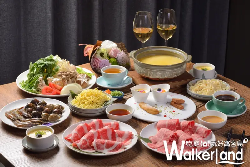 嚴選來自海洋及大地的食材,精心熬製的湯底蘊含滋養身心的溫暖心意,搭配天然繽紛蔬菜擺盤、滋味豐饒,菜單設計提供餐前酒、小品、火鍋湯底(2選1)、海鮮、火鍋肉片、餐後甜點及飲品,雙人價3,880元。