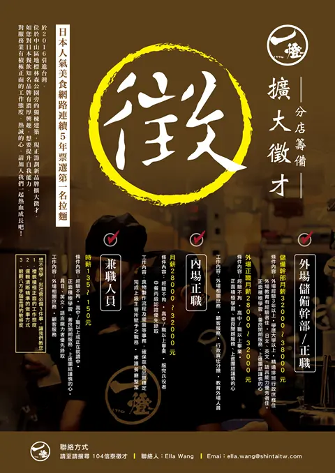 在2016/04開幕的日本超人氣拉麵店麵屋一燈,在社長坂本幸彥曾表示會在台灣其他地點開設姐妹品牌「豚骨一燈」,而目前官方透過人力銀行、粉絲團進行人才召募。預計將在三、四月期間就可以品嚐到一燈系列超人氣「沾麵」。![]()