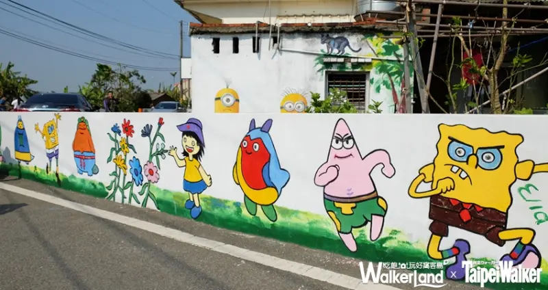 走入緊鄰百年歷史的蘆竹「誠聖宮」旁的小村莊,穿梭於紅磚瓦舍、綠意巷弄中,不難發現周圍牆壁都化身為五、六十年代常見的農村風情,這裡便是「坑口彩繪村」!在村民與孩童攜手努力下,使純樸村莊變成都會一日遊的首選,不僅能愜意漫步於田野、綠蔭大道中;春風吹起時,大片花海更是拍照打卡的熱門景點。(於A11坑口站下車後步行5分鐘)![]()
