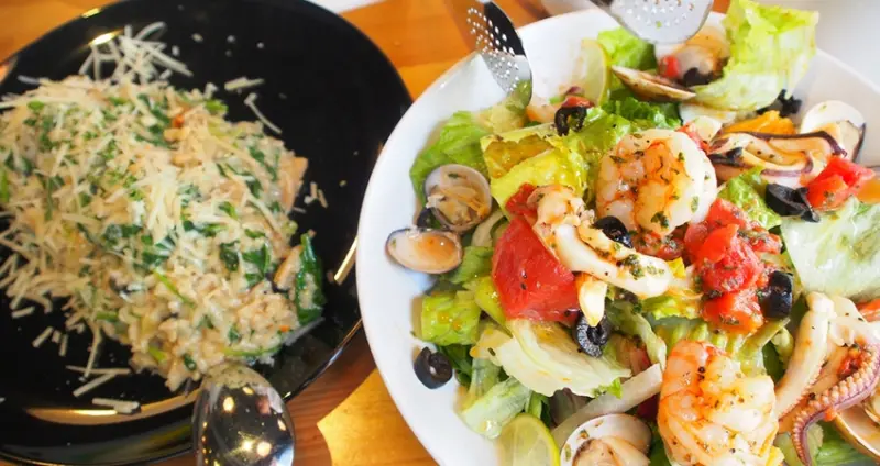 「薇樂莉 Love Viaggio 微旅行」曾在「House+Cafe'」說:濃厚奶油味的燉飯,配上乳酪和野菇 口感恰到好處 吃一口香氣四溢。擺滿各種海鮮的生菜沙拉 更是讓人胃口大開,我喜歡油醋醬汁和生菜搭配起來格外清爽!<詳全文>