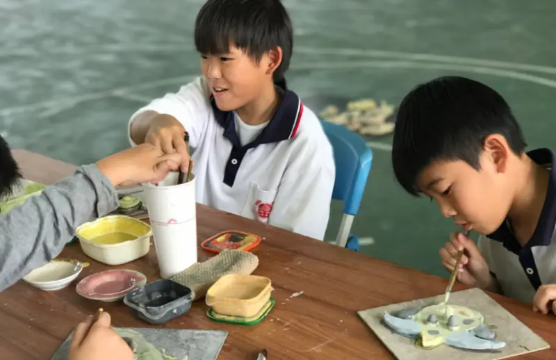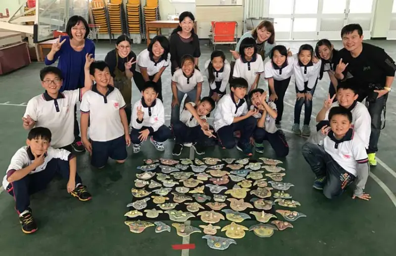 童趣創作躍上牆面,陶板創作分享地方故事!藝術家將地方的產業元素「菱角」以陶板、彩繪方式於街屋牆面進行創作。藝術家王薰萍、沈喬楓,帶領官田國小孩童以手作方式一起將想像中的菱角製作成陶板,未來孩子的作品都會成為官田街屋的裝置藝術,透過創作過程,引領孩童認識家鄉的農產特色,分享地方故事,深根鄉土教育。