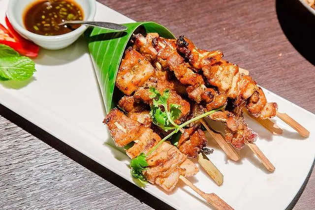 羅望豬肉串。這豬肉串比我想像來的軟嫩,最少不像看起來那麼乾,肥肉的油質略多,剛好是我最愛的口感比例,單吃豬肉的油甜相對明顯,沾了羅望調出來的醬汁變得更加好吃,卻少了豬肉油質的豐口度。<全文介紹及店家資訊>![]()