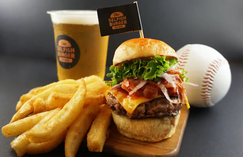 Selfish Burger喀漢堡自去年七月成立以來,除了致力於提供經典系列漢堡及在地精釀啤酒,強調漢堡肉以牛排原塊當日現絞現煎,也成為COMMUNE A7人氣始終不墜的排隊人氣名店,甚至締造每60秒就可賣出一個漢堡的紀錄。這次所推出的「完封泡菜」小漢堡,一如既往Selfish Burger自私的品牌精神,除了好吃到捨不得分享的漢堡,面對宿敵更只想展現自私佔有勝利的必勝魂。本次使用新鮮的美國CHOICE等級原塊牛排用肩胛肉,當日在店內現絞現煎的所製作的牛肉漢堡排,加上韓式泡菜口感顯得充滿層次,也完美呈現牛肉的鮮甜,搭配充滿地瓜甜味的漢堡麵包,咬下那一剎那,口中是滿足的味道。大口喀漢堡啃泡菜的同時,好吃到不願和人分享,搭配戶外轉播棒球滿場的熱血,就像有句棒球名言所說的「真的好想贏韓國!」,面對宿敵我們只想自私的占有勝利的滋味。